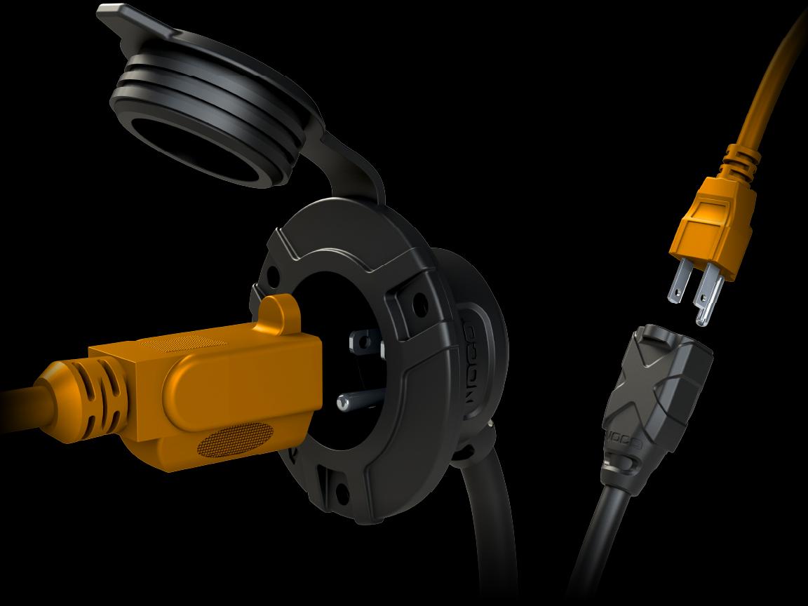 The GCP1E is an AC Port Plug with an integrated extension cable (6-feet) that offers optimal flexibility and ease of installation. It can mount to the exterior of any vehicle to make the charging port more accessible. Equipped with heavy duty 14 AWG wire to supply power to your device, GCP1E is rated at 15 amperes and 125 volts for peak performance.