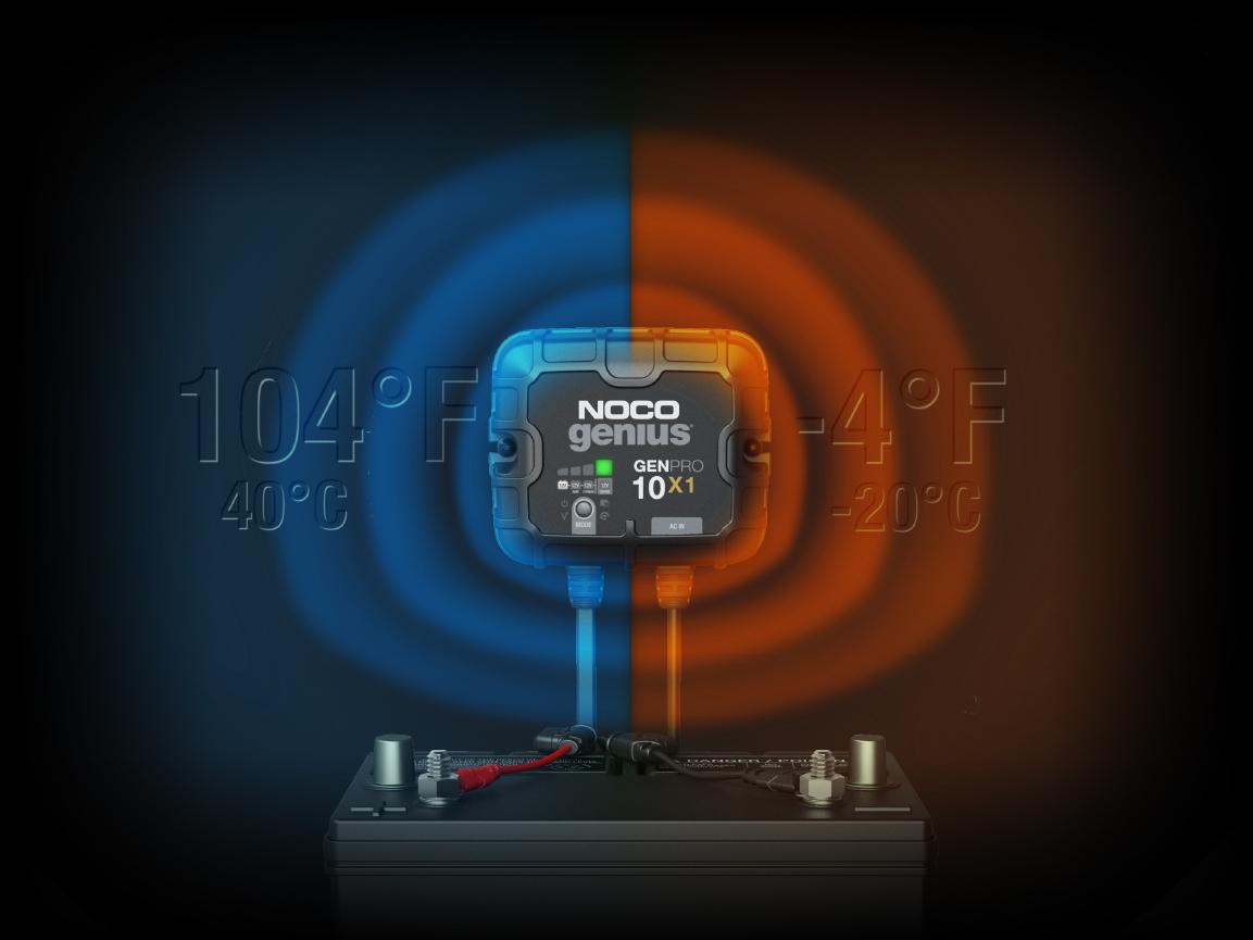 The new integrated thermal sensor automatically monitors and adjusts the charging cycle based on fluctuations of ambient temperature, limiting the chance of under-charging or over-charging, providing a more accurate and fully charged battery. Avoids under-charging in cold weather down to -4F and avoids over-charging in hot weather up to 104F.
