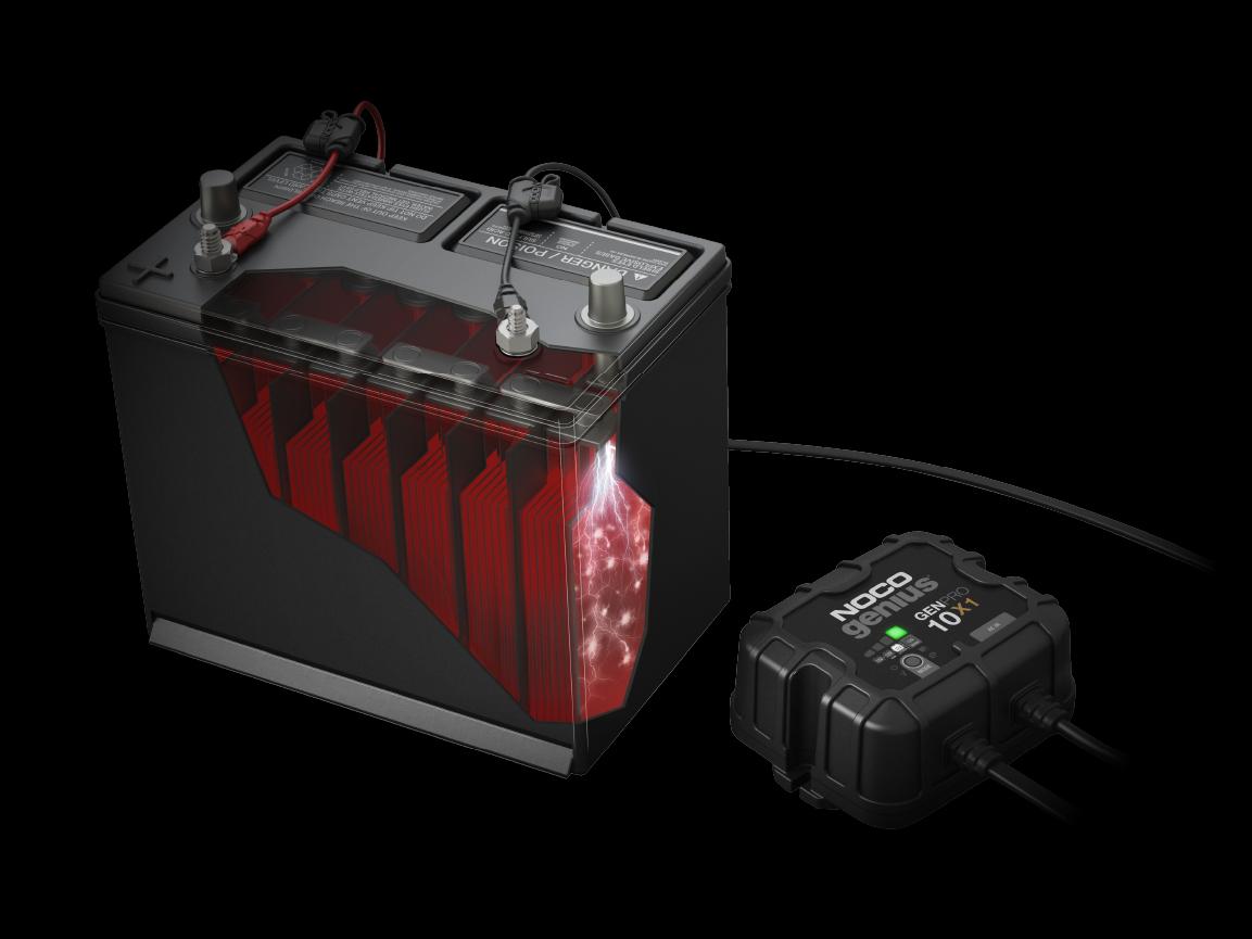 Finally a charger from start to finish that’s completely automatic. No special modes, no technical knowledge required. Genius will safely charge any battery. Detect damaged batteries and intuitively repair them. And actively monitor for long-term battery maintenance and extend battery life. This system allows for continuous operation without user intervention, and zero risk of overcharging your battery.