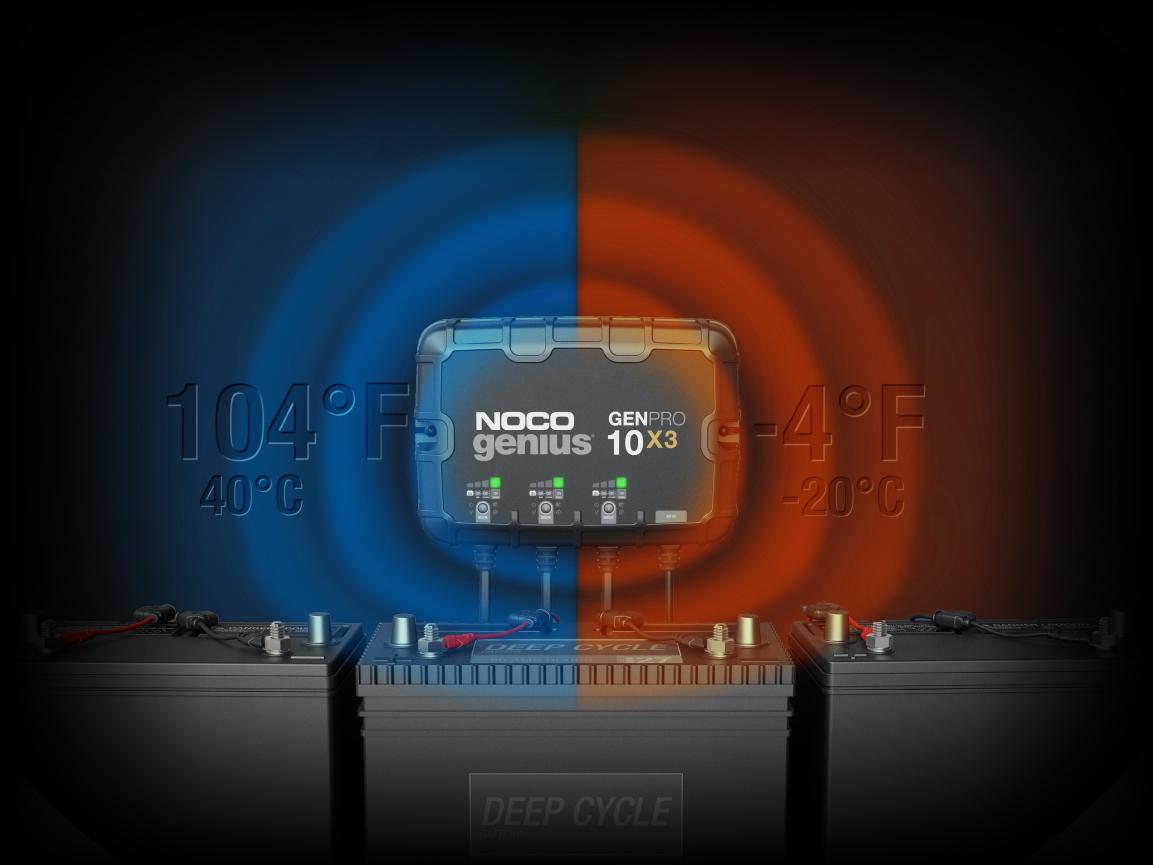 The new integrated thermal sensor automatically monitors and adjusts the charging cycle based on fluctuations of ambient temperature, limiting the chance of under-charging or over-charging, providing a more accurate and fully charged battery. Avoids under-charging in cold weather down to -4F and avoids over-charging in hot weather up to 104F.