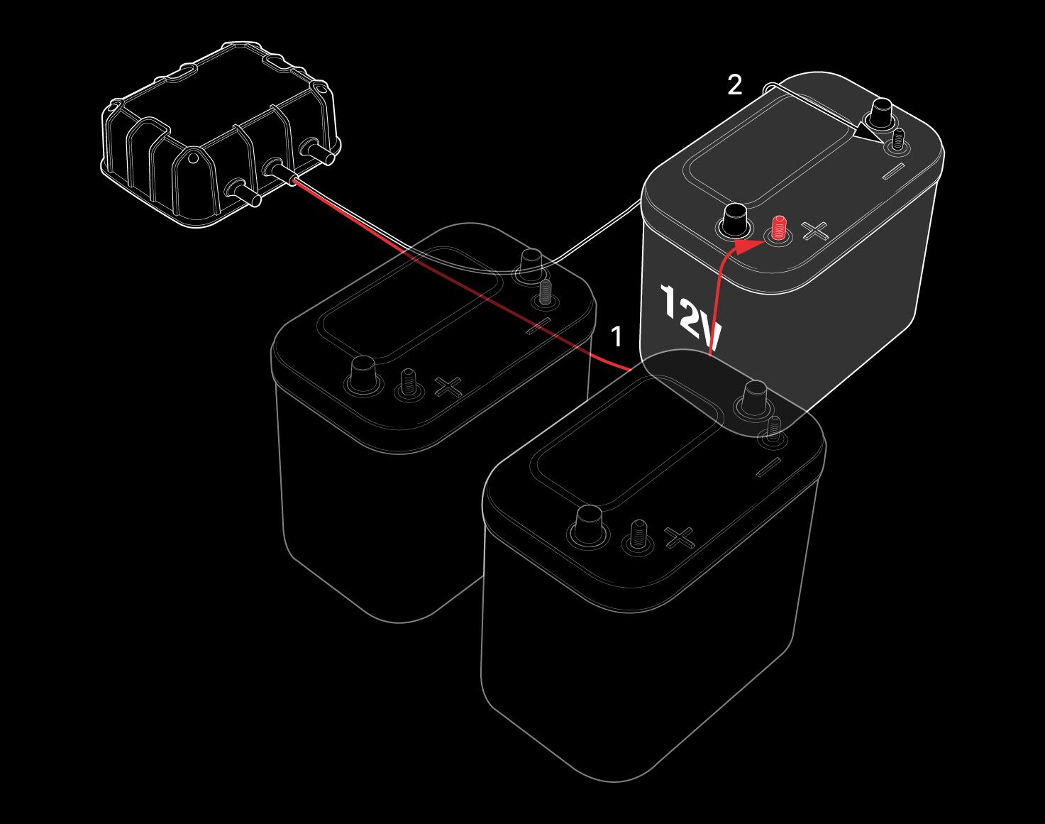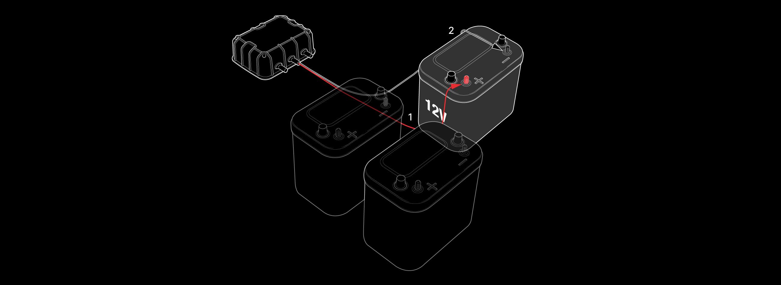 Connecting the NOCO GEN’s negative lead to the negative terminal of the 12-volt battery, and the positive lead to the positive terminal. This is the starter battery system, and it used to power the vehicle's start-up and native accessories.