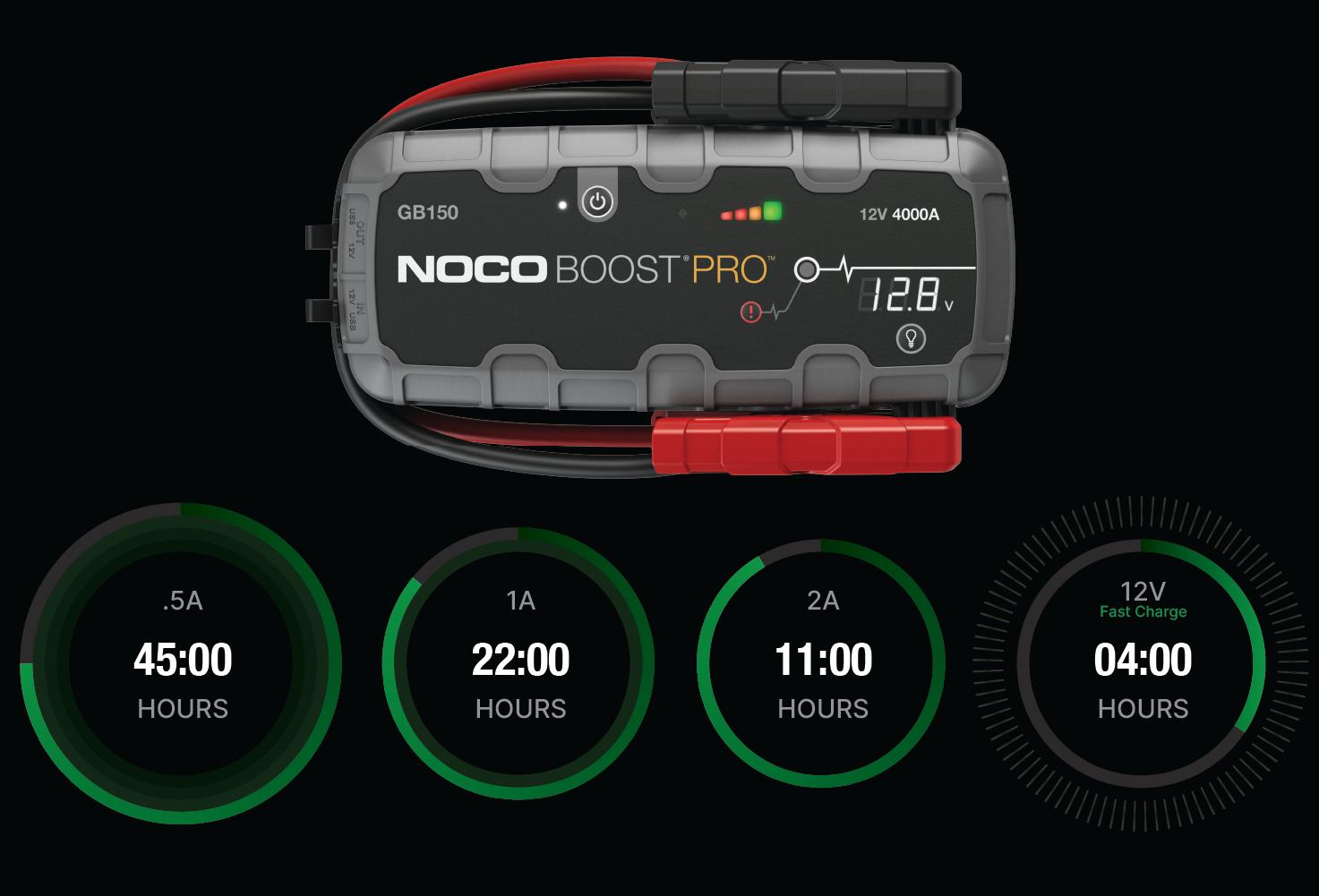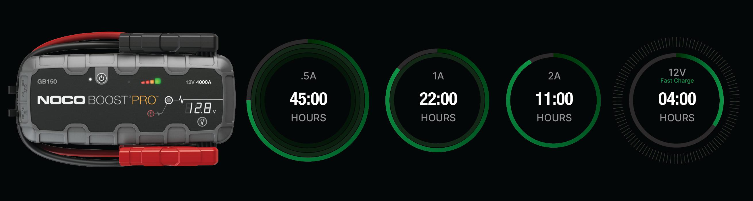 Connect the GB150 using the included USB Charge Cable to the USB IN port and a powered USB port, like an AC adapter, car charger, laptop and more. The USB IN port is rated at 2.1 Amps to ensure safe and efficient charging of the internal lithium battery. Due to FCC regulations, we do not recommend charging and discharging the unit at the same time. The time to recharge a GB150 will differ based on the discharge level and the power source used. Actual results may vary due to battery conditions.