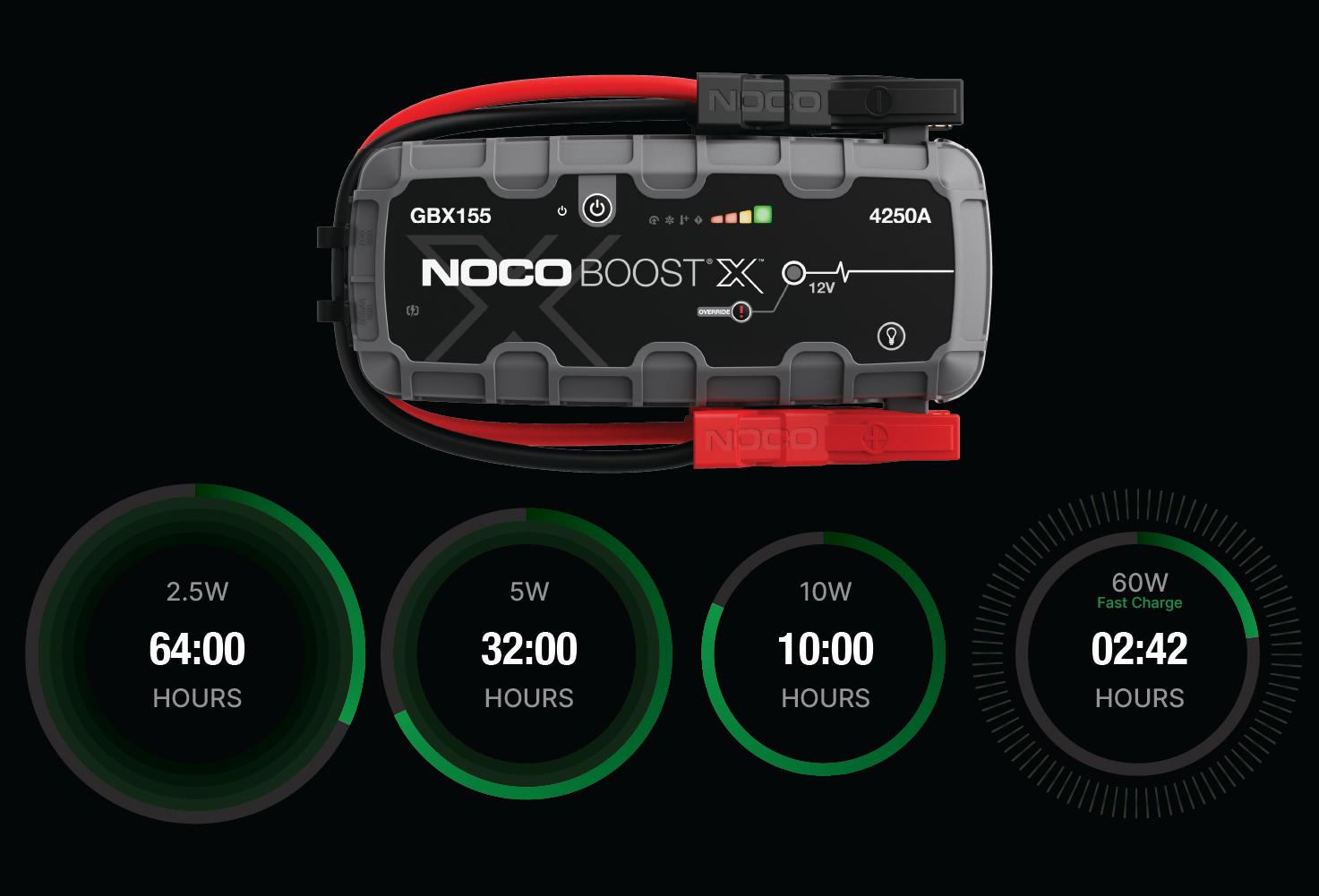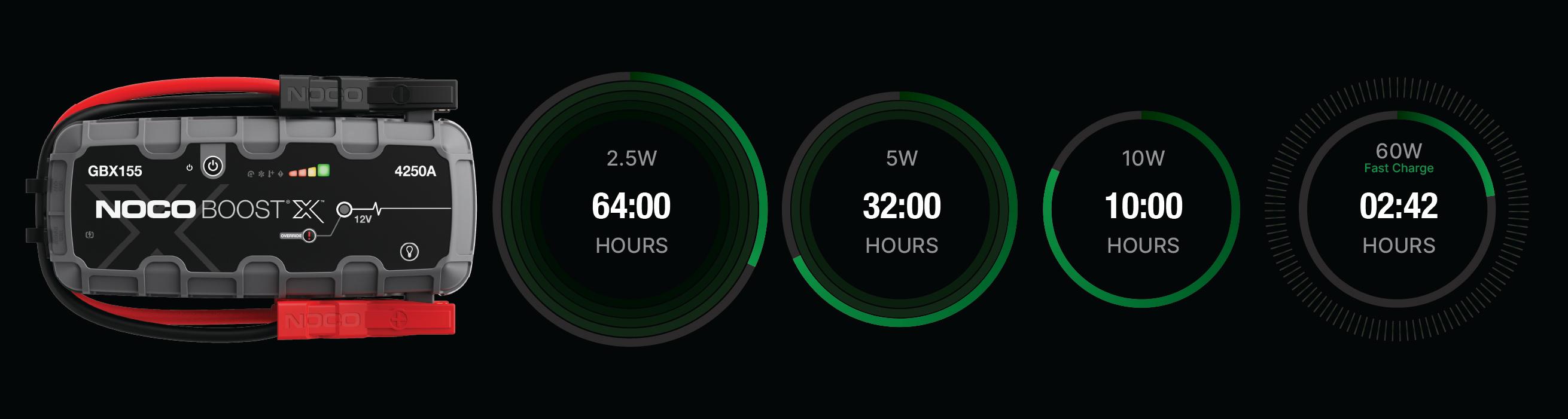 Connect the GBX155 using the included USB-C Charge Cable to the USB-C IN/OUT port and a powered USB port, like an AC adapter, car charger, laptop and more. The USB-C IN/OUT port on Boost X utilizes Power Delivery 3.0 technology capable of receiving/delivering up to 60W. Due to FCC regulations, we do not recommend charging and discharging the unit at the same time. The time to recharge Boost X will differ based on the discharge level and the power source used. Actual results may vary due to battery conditions.