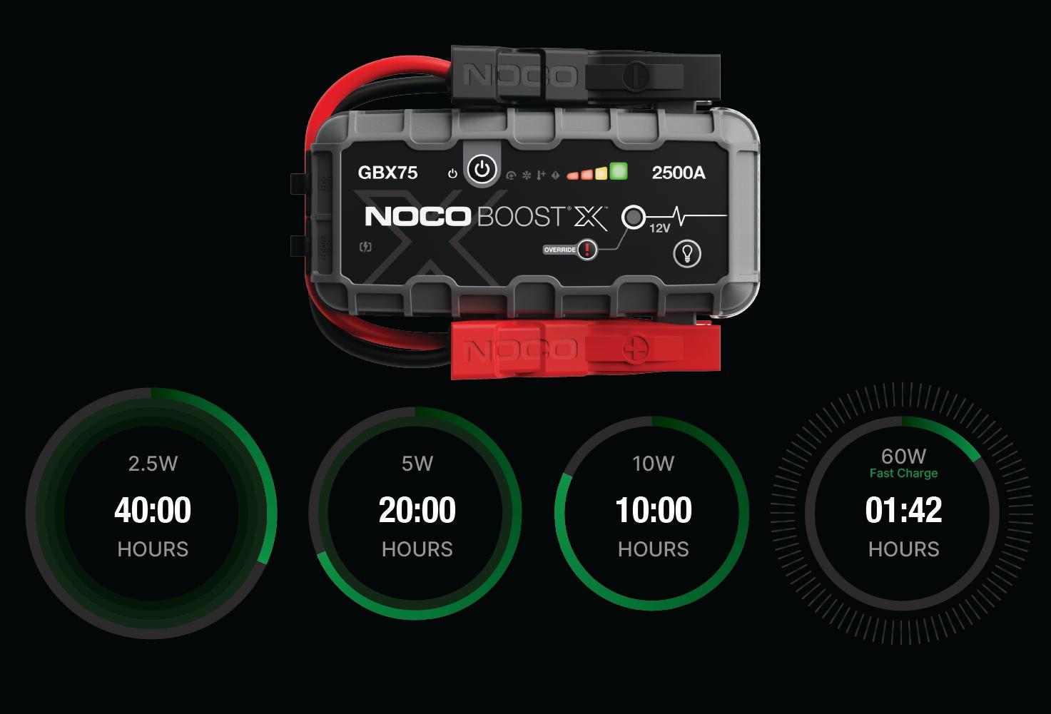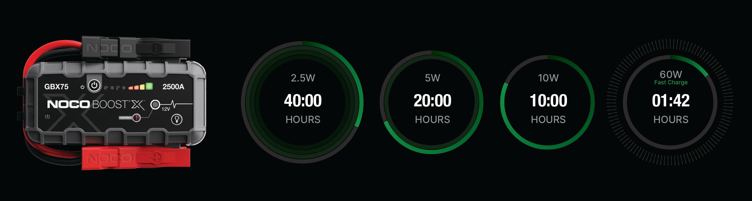 Connect the GBX75 using the included USB-C Charge Cable to the USB-C IN/OUT port and a powered USB port, like an AC adapter, car charger, laptop and more. The USB-C IN/OUT port on Boost X utilizes Power Delivery 3.0 technology capable of receiving/delivering up to 60W. Due to FCC regulations, we do not recommend charging and discharging the unit at the same time. The time to recharge Boost X will differ based on the discharge level and the power source used. Actual results may vary due to battery conditions.